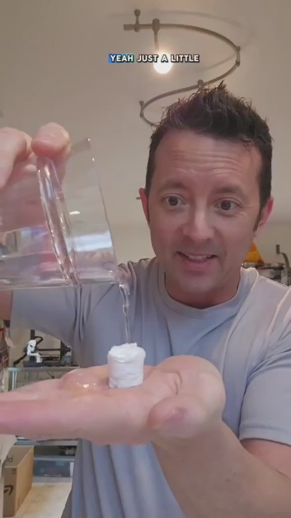 Answer 1: Simply add a few drops of water to the compressed tablet, and watch it expand into a soft, plush towel within seconds. It's a fast and convenient solution for any mess or spill!